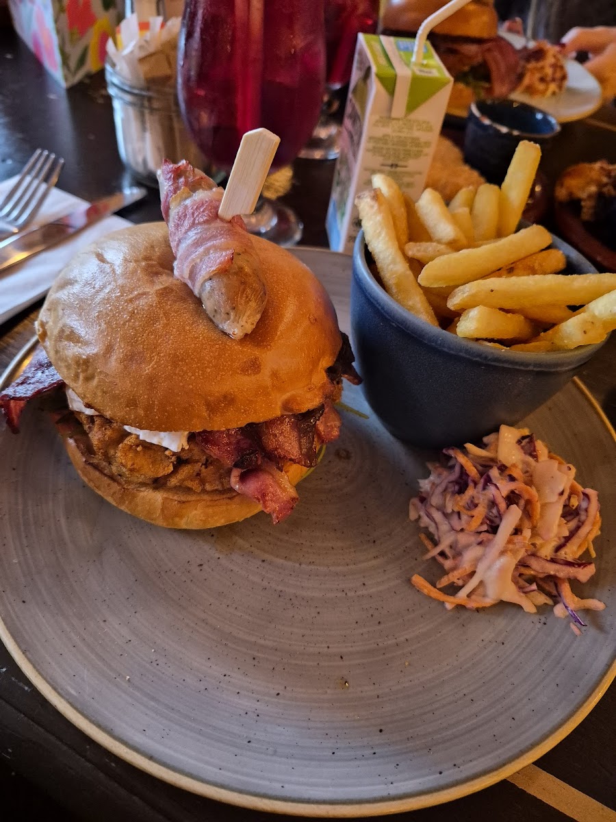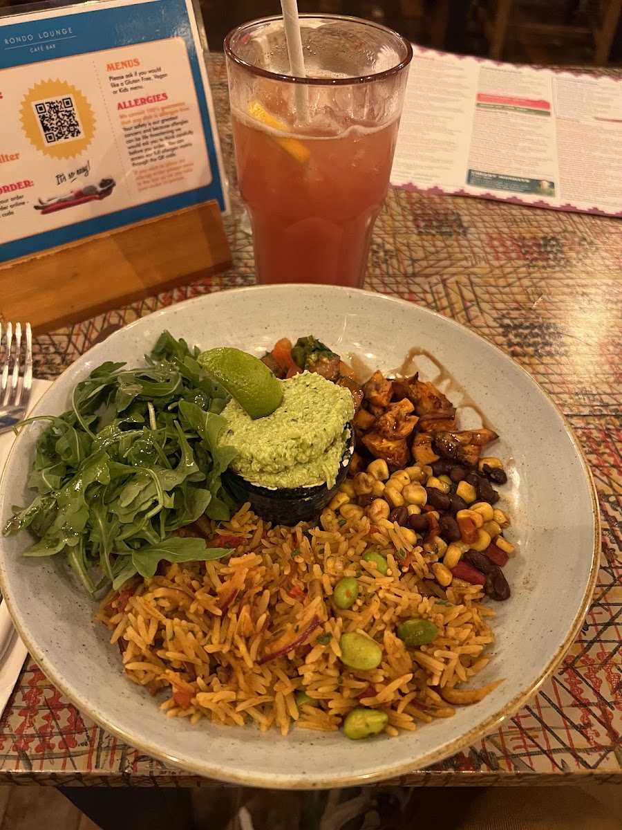 Friendly staff & a nice interior. Dogs are welcome, plus a children area (there was a colouring area for small ones with free accessories). Good menu, with a variety of options, including healthy choices. Atmosphere, music in background with a few people. Food was served within 10 mins, drinks was at the bar, & it took 3 mins to place my order. Interestingly, the server did check with me on any possible allergies. Great meal choice, (Chicken Bang Bang) which was the right temperature & good ingredients. Staff on hand to assist & check your meal is OK. Prices were typical of the area & the outlet. All in all, it is a definite 4 from me.